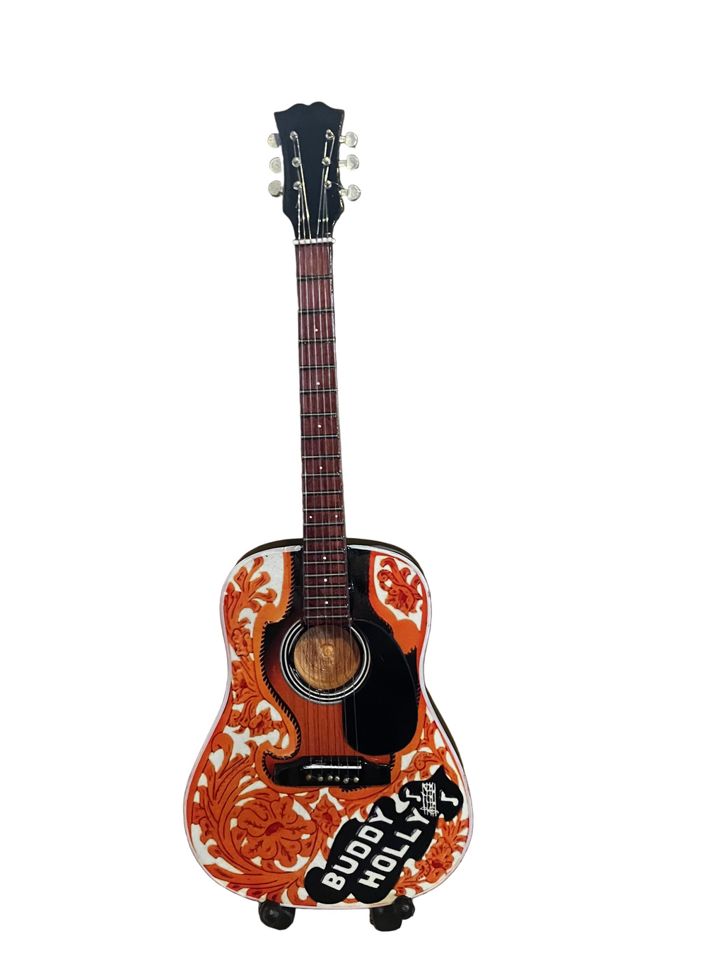 Buddy Holly Handmade wooden collectible replica miniature mini guitar with stand