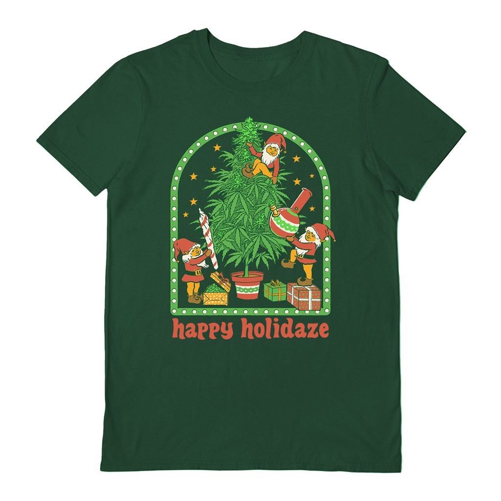 Steven Rhodes Official Cotton T Shirt - Happy Holidaze Christmas Cannabis